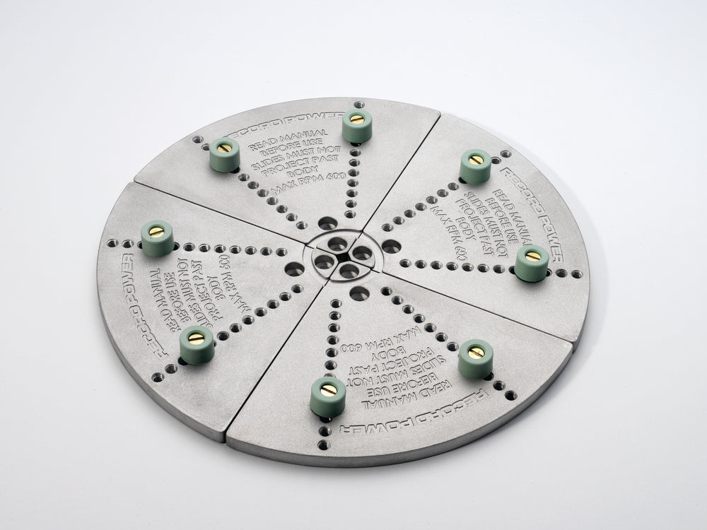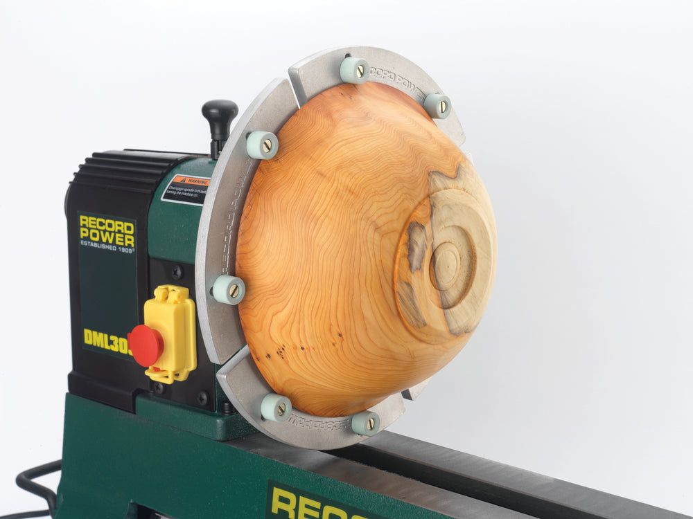 Le ganasce di ripresa con tamponi angolari morbidi Record Power – versione Mega sono progettate per offrire una capacità maggiorata nella ripresa e rifinitura di ciotole di grandi dimensioni, fino a 295 mm di diametro. Questa versione nasce in risposta alle richieste dei tornitori professionisti, mantenendo al tempo stesso la compatibilità con torni dotati di volano da 12”, grazie a un design che consente di liberare il bancale durante la rotazione.