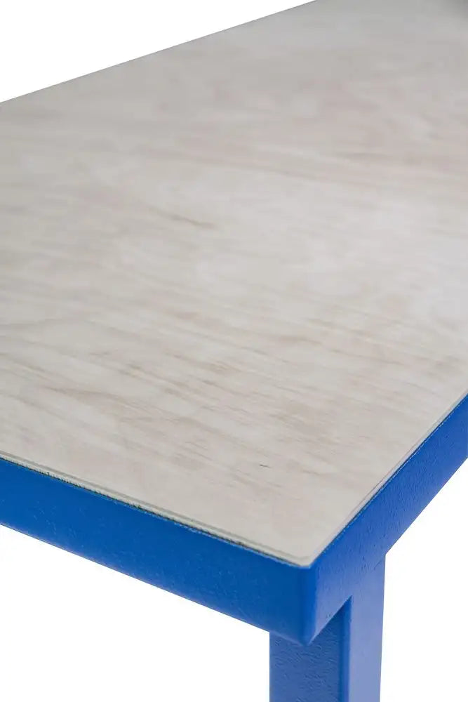 Il piano di lavoro da 38 mm, impiallacciato in faggio su entrambi i lati e supportato da un pannello ad alta densità, offre una superficie resistente all’usura quotidiana. Il telaio in tubolare d’acciaio 40 × 40 mm con rinforzi da 30 × 30 mm aumenta ulteriormente la stabilità. La finitura a polvere blu RAL 5015 conferisce al banco un aspetto professionale e ordinato. Un banco affidabile, essenziale e funzionale, firmato Güde.