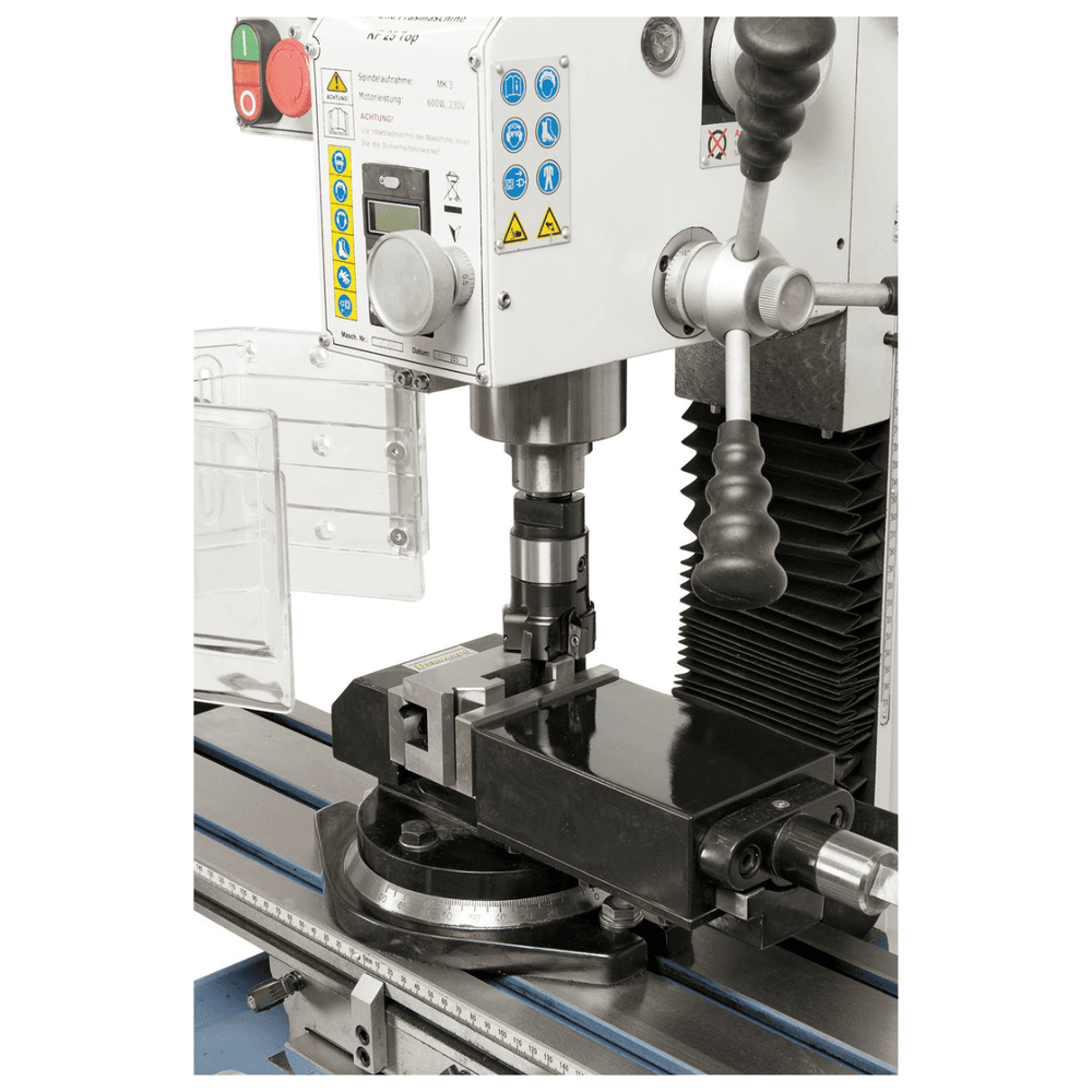 La trapano-fresatrice Bernardo KF 25 D Vario è una macchina robusta e versatile, progettata per foratura, fresatura e filettatura. Grazie al cambio a 2 stadi e alla regolazione continua della velocità (50–2250 rpm), offre la possibilità di adattare i giri del mandrino al tipo di materiale e di lavorazione.