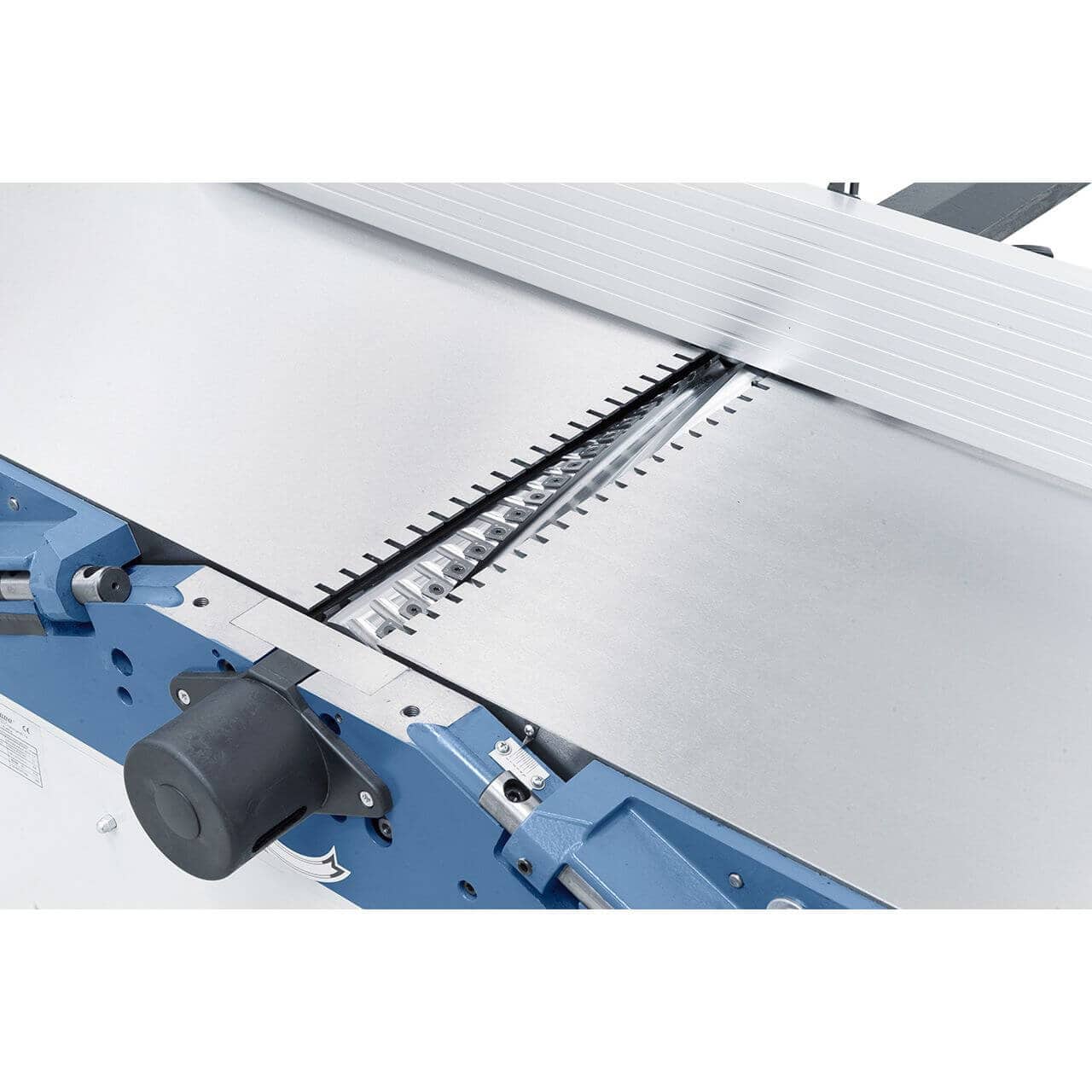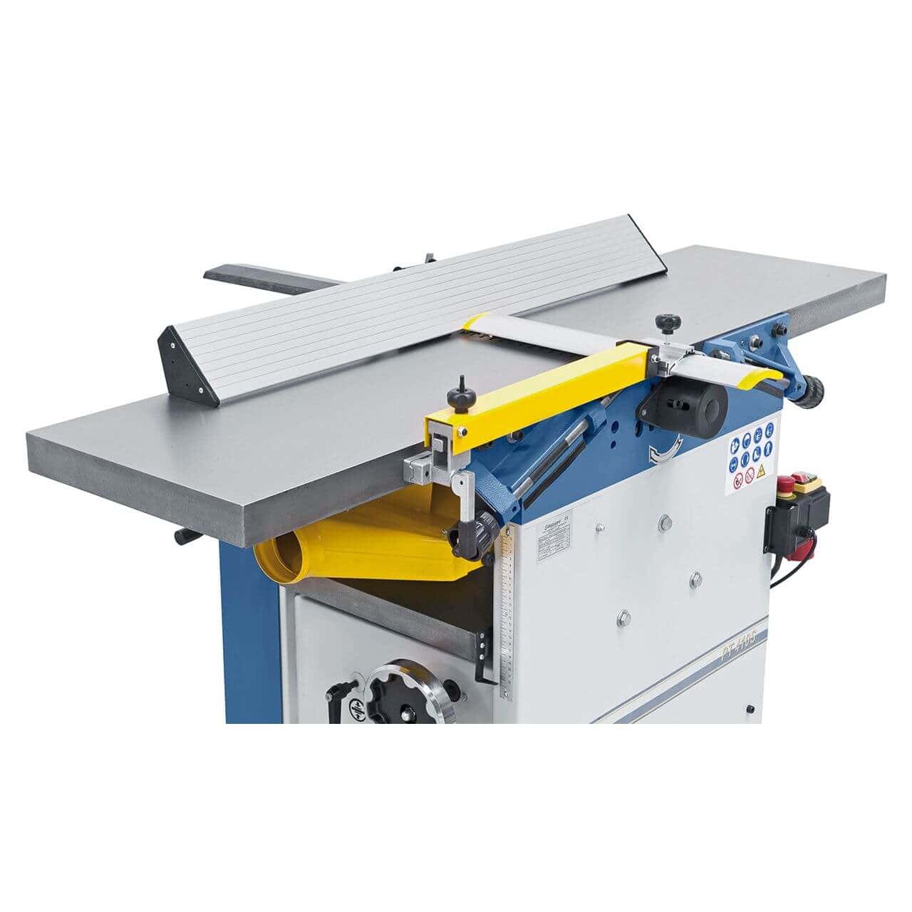 La pialla a filo e spessore Bernardo PT 410 S è una macchina professionale di fascia alta, equipaggiata con albero a spirale dotato di 72 inserti in metallo duro (TCT) che garantiscono finiture impeccabili, minore rumorosità (fino al 50% in meno) e una durata fino a 20 volte superiore rispetto ai coltelli tradizionali. Ogni inserto può essere ruotato o sostituito singolarmente, riducendo i costi di manutenzione. I tavoli in ghisa indeformabile assicurano una planarità costante, mentre il piano a spessore con colonna centrale consente una regolazione precisa e stabile. La recinzione con guida prismatica inclinabile da 90° a 45° e la cappa di aspirazione Ø 100 mm completano un sistema affidabile e sicuro. Con un motore trifase da 3,0 kW (4 HP), la PT 410 S combina potenza, precisione e silenziosità, risultando ideale per falegnamerie e officine di alta produttività.