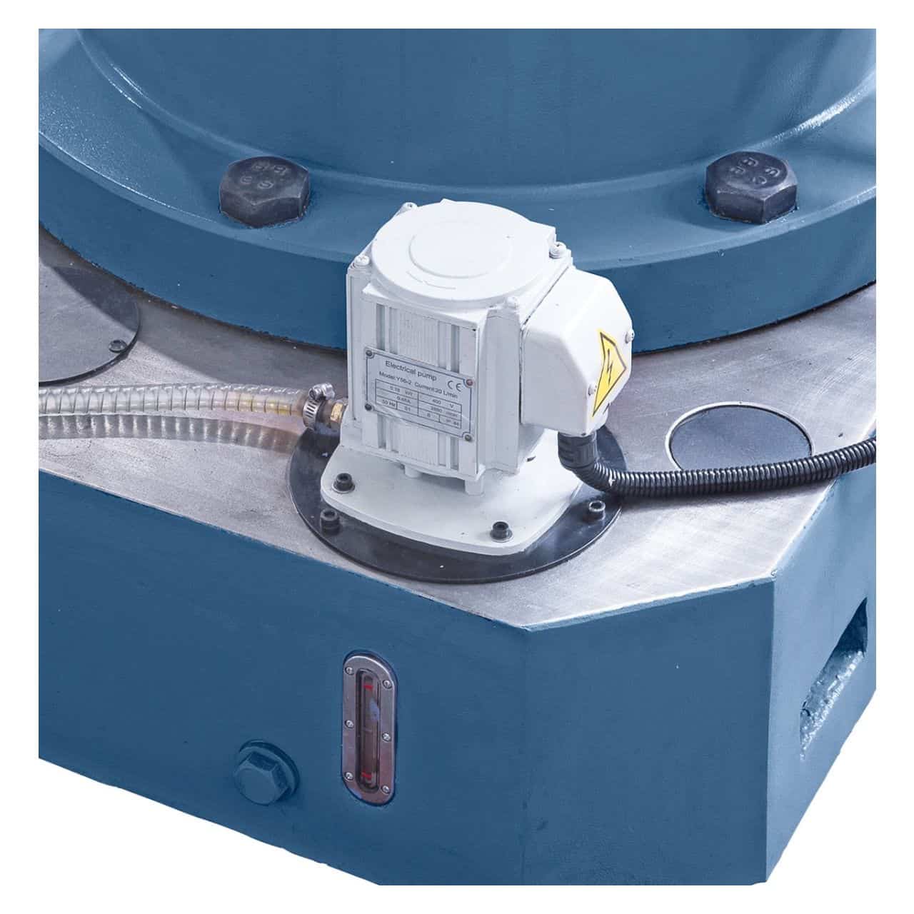 Il braccio e la testa sono regolabili con serraggi idraulici, mentre il contrappeso sul mandrino assicura equilibrio ottimale. Inclusi di serie: pompa di refrigerazione, protezione regolabile, motore di sollevamento, inverter, LED e box table di grandi dimensioni.