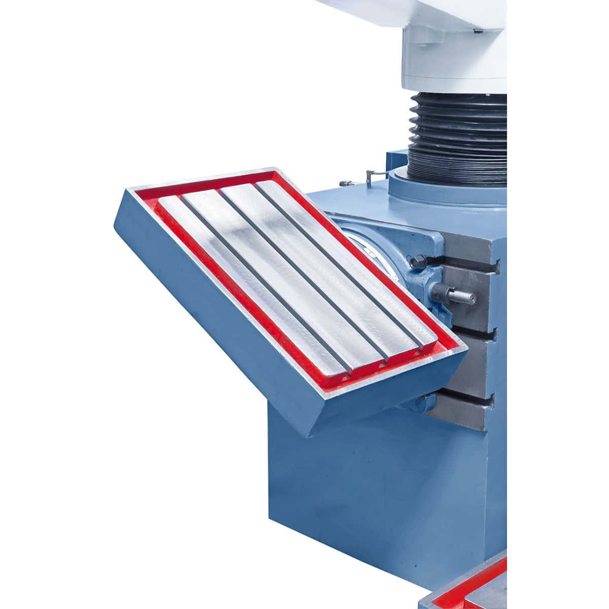 La costruzione innovativa con braccio radiale rinforzato e colonna da Ø 240 mm assicura rigidità e assenza di vibrazioni. La testa di foratura è regolabile elettromotorizzata in altezza senza perdere il punto di lavorazione, ideale per forature profonde e lavorazioni su più pezzi contemporaneamente.