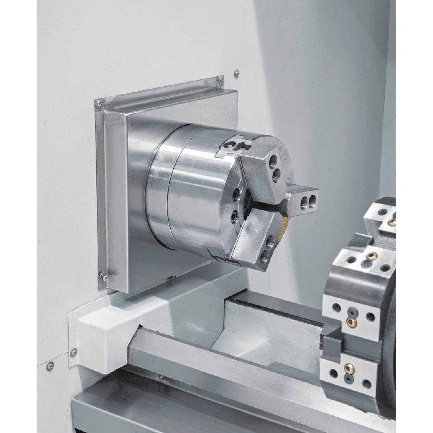 È incluso un mandrino autocentrante idraulico Ø 200 mm con centralina idraulica, che assicura bloccaggi rapidi, sicuri e precisi del pezzo in lavorazione.