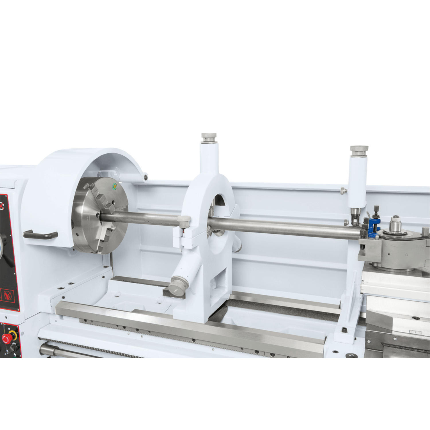 Il motore da 7,5 kW (10 HP) con freno magnetico CE e il cambio a 16 velocità (25 – 1600 giri/min) assicurano prestazioni elevate e adattabilità a diverse applicazioni. Il visualizzatore digitale a 3 assi ES-12 V con display LCD consente un controllo preciso delle lavorazioni, mentre la dotazione completa include mandrino autocentrante, piatto frontale, lunette, torretta a 40 posizioni e dispositivo refrigerante.