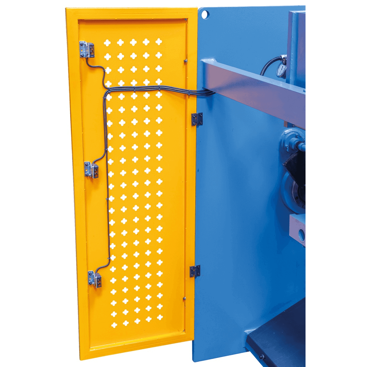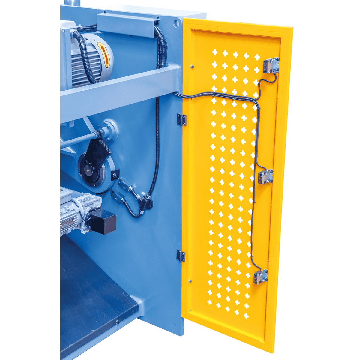La cesoia idraulica Bernardo HSB 2000 x 4 è una macchina professionale progettata per il taglio preciso ed efficiente di lamiere fino a 2000 mm di lunghezza e 4 mm di spessore (400 N/mm²). Dotata di un pannello di controllo intuitivo con comandi integrati e unità di comando ES21S, permette di regolare con facilità parametri come contatore di taglio e larghezza. L’arresto posteriore motorizzato, con movimento su mandrini a ricircolo di sfere, assicura precisione costante. L’illuminazione della linea di taglio con contorno d’ombra migliora la visibilità e garantisce risultati ottimali, mentre i bracci di supporto frontali e il piano con rulli integrati facilitano la lavorazione di pannelli di grandi dimensioni. La macchina è equipaggiata con pressori multipli, fotocellule di protezione e coperchio di sicurezza per garantire massima sicurezza operativa. Con un motore da 4 kW e una struttura solida, la HSB 2000 x 4 è ideale per carpenterie e officine che richiedono affidabilità, potenza e precisione.