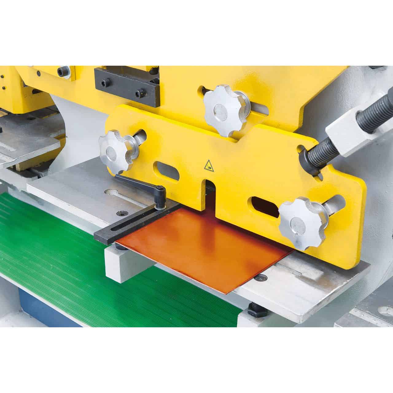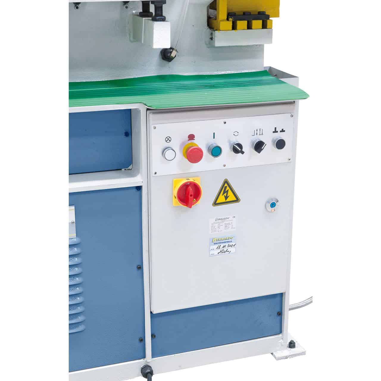 La cesoia idraulica Bernardo HPS 55 ĆØ una macchina versatile e potente, pensata per la lavorazione professionale di acciai e profilati. Con una forza di punzonatura di 55 tonnellate, consente di forare fino a 24 mm di diametro su spessori da 15 mm, estendibili fino a 40 mm con accessori opzionali. Dotata di più stazioni operative, permette di lavorare piatti fino a 330 mm, profili angolari, barre tonde e quadre, oltre a profili a T, U e I. La presenza di una stazione di intaglio dedicata consente intagli rettangolari e triangolari con spessore fino a 15 mm, ampliando le possibilitĆ dāuso. Equipaggiata con un motore da 4 kW e struttura robusta da 1400 kg, la HPS 55 garantisce precisione, potenza e affidabilitĆ per carpenterie, officine meccaniche e aziende che richiedono flessibilitĆ e produttivitĆ elevate.