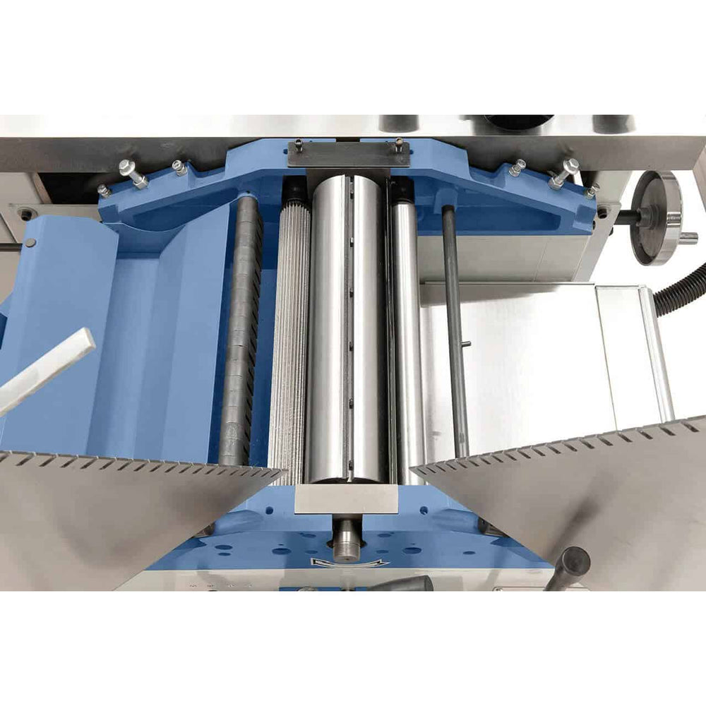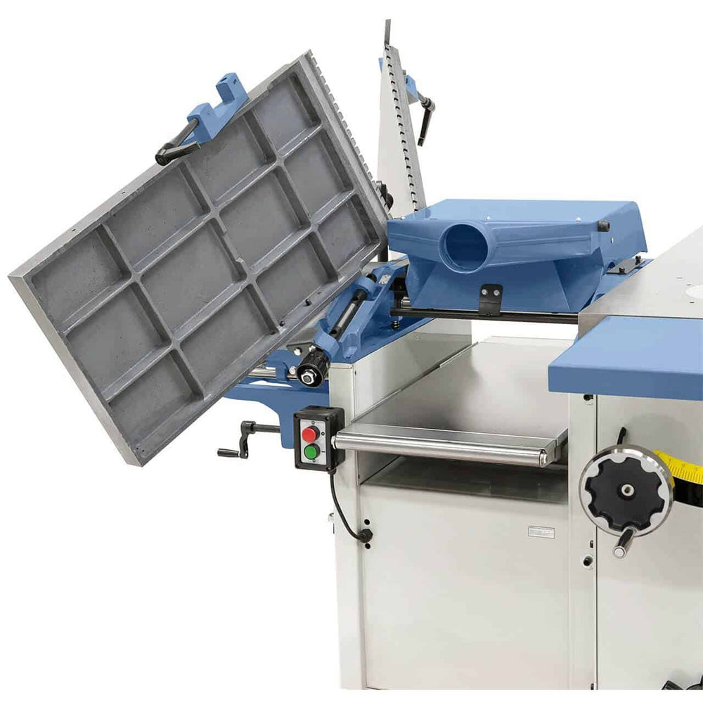 La CF 410 F - 2600 rappresenta il top di gamma tra le macchine combinate universali, con una larghezza di piallatura fino a 410 mm, un tavolo scorrevole da 2600 mm e un’unità toupie inclinabile da 0° a -45°. Ideale per falegnamerie che necessitano di lavorazioni di precisione su grandi pannelli, garantisce massima stabilità, silenziosità e versatilità, il tutto in una struttura compatta e robusta.