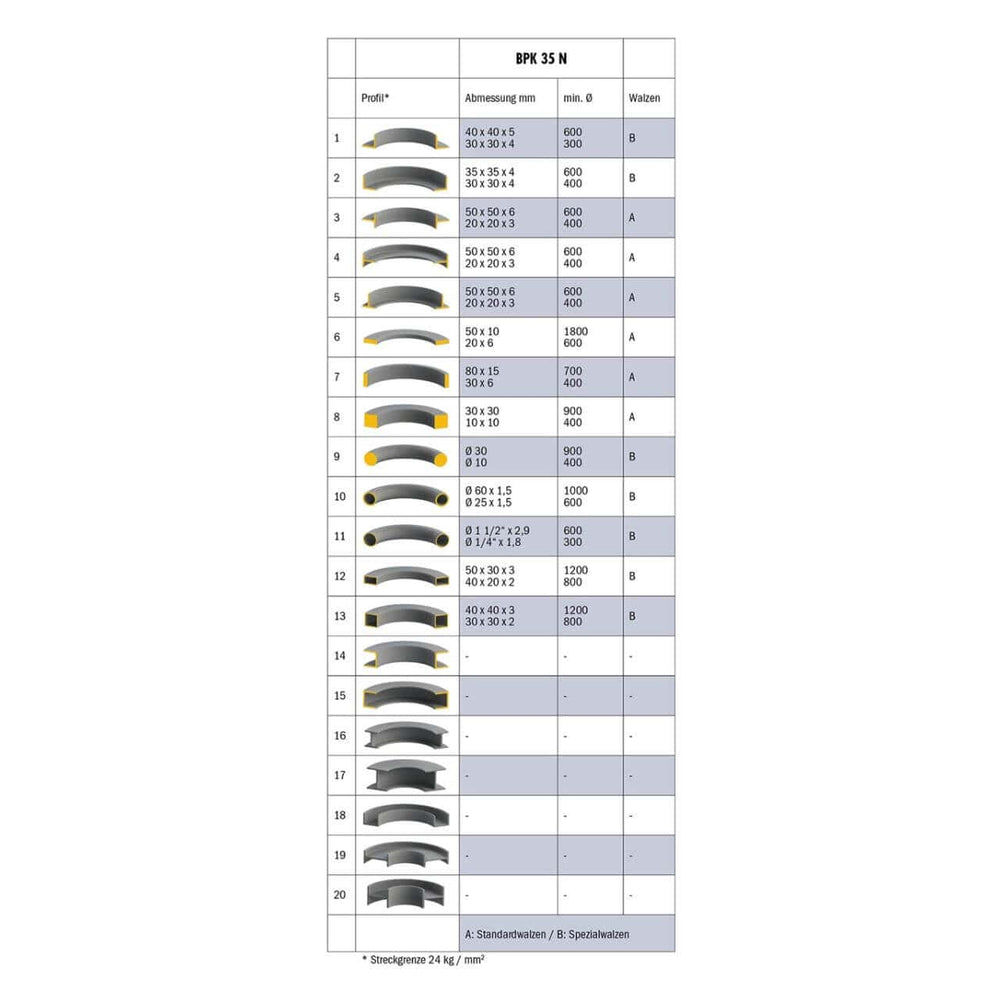 La curvatubi elettrica Bernardo BPK 35 N è una macchina compatta e robusta, ideale per officine e reparti di carpenteria leggera che necessitano di piegature precise su tubi e profili metallici. Grazie agli alberi da 30 mm e ai rulli da 138/137 mm, garantisce stabilità e precisione durante la lavorazione. La velocità di piegatura di 4,5 m/min, unita al motore elettrico da 0,75 kW, assicura prestazioni costanti in un formato compatto e facilmente collocabile. La macchina è fornita di serie con un set di rulli standard, rulli raddrizzatori laterali e pedale di comando con arresto di emergenza per la massima sicurezza. Con un peso di circa 185 kg e dimensioni contenute, rappresenta la soluzione perfetta per chi cerca una curvatubi efficiente, affidabile e sicura in spazi ridotti.