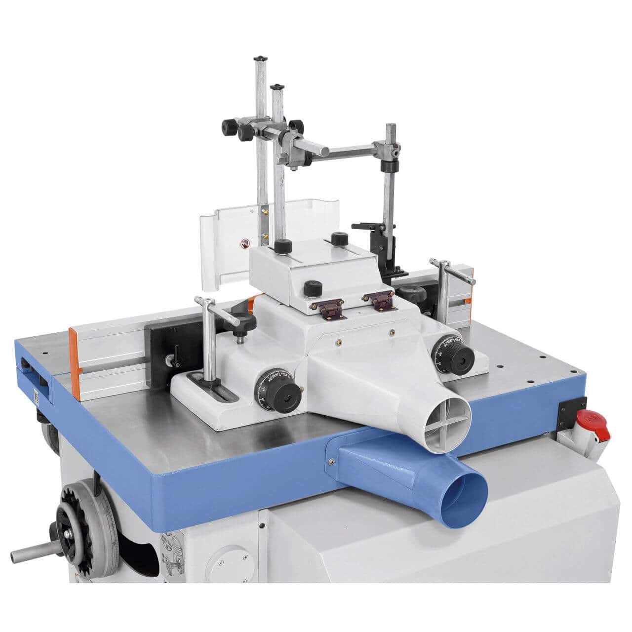 La TS 900 F è una fresatrice verticale professionale con albero inclinabile da -10° a +45°, dotata di carro scorrevole integrato nel piano di lavoro. Grazie alla costruzione in ghisa grigia rinforzata e alla potenza del motore da 4,0 kW, questa macchina offre elevata precisione, sicurezza e comfort d’uso. Ideale per profilature, tenonature e lavorazioni complesse su grandi pezzi grazie alla corsa di 840 mm del carro.