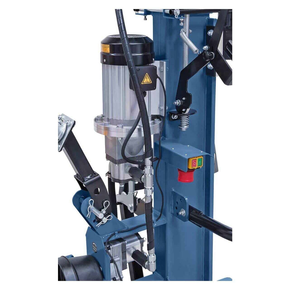 Equipaggiato con un motore elettrico trifase da 5,1 kW (400 V) e una presa di forza a cardano (PTO), offre doppia alimentazione: può essere utilizzato sia in officina con collegamento elettrico, sia in campo tramite trattore. La corsa del pistone di 948 mm consente di spaccare tronchi lunghi e robusti con estrema facilità.