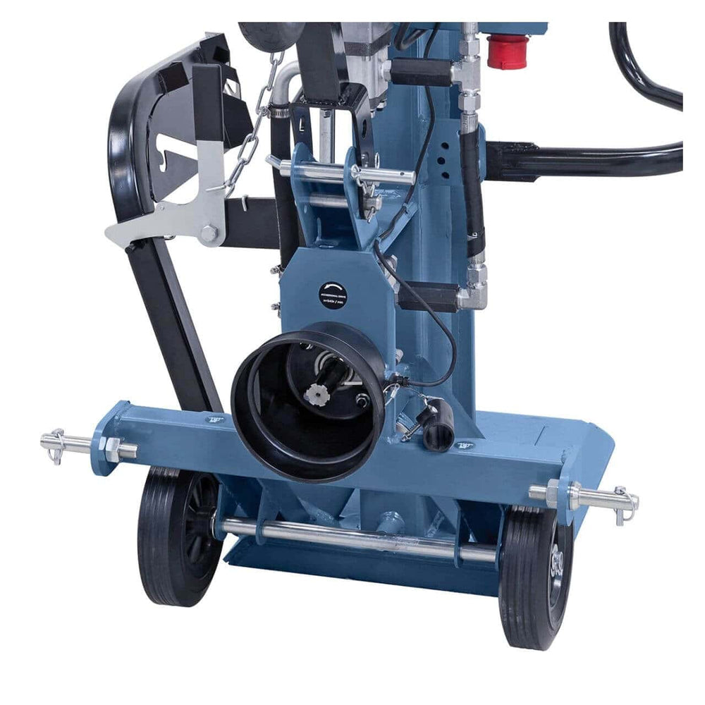 Pur avendo un peso di 314 kg, lo spaccalegna è dotato di un carrello con ruote che ne agevola gli spostamenti.
