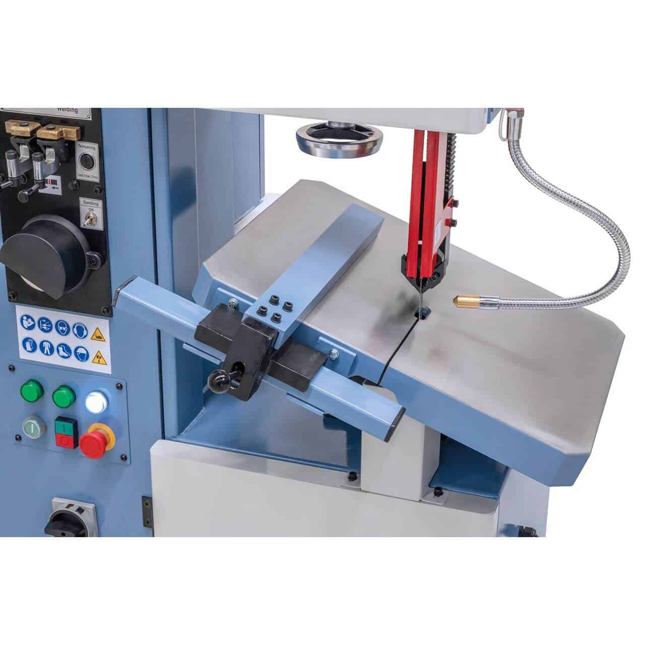 La Bernardo VBS 310 è una sega a nastro verticale professionale, progettata per tagli precisi e versatili su metallo e materiali sagomati. Grazie al tavolo in ghisa massiccia e inclinabile in 4 direzioni (-15° a +45°), assicura stabilità e sicurezza durante il lavoro. La velocità variabile da 10 a 180 m/min, impostabile tramite display digitale LED, permette di adattarsi a diversi materiali. Completa di saldatrice lama con dispositivo di ricottura, cesoia e mola integrata, consente la preparazione e rigenerazione delle lame direttamente in macchina. Dotata di microrefrigerazione, guida parallela e guida angolare, è ideale anche per tagli complessi e di precisione. Con capacità di taglio fino a 315 mm in larghezza e 185 mm in altezza, rappresenta una macchina compatta (265 kg) e affidabile, perfetta per officine e carpenterie che cercano qualità e funzionalità in un formato ridotto.