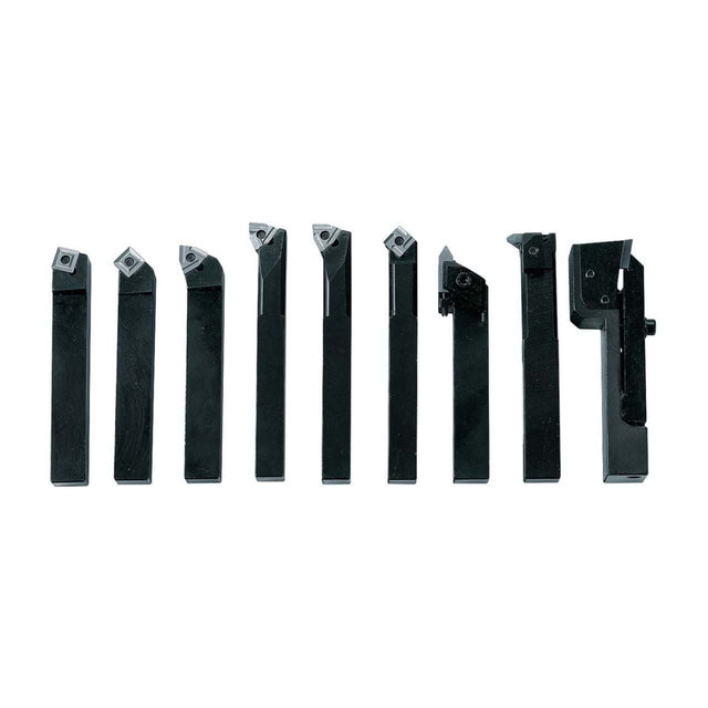 Set da tornio con inserti multitaglienti HM 10 mm, 9-pezzi, kit F