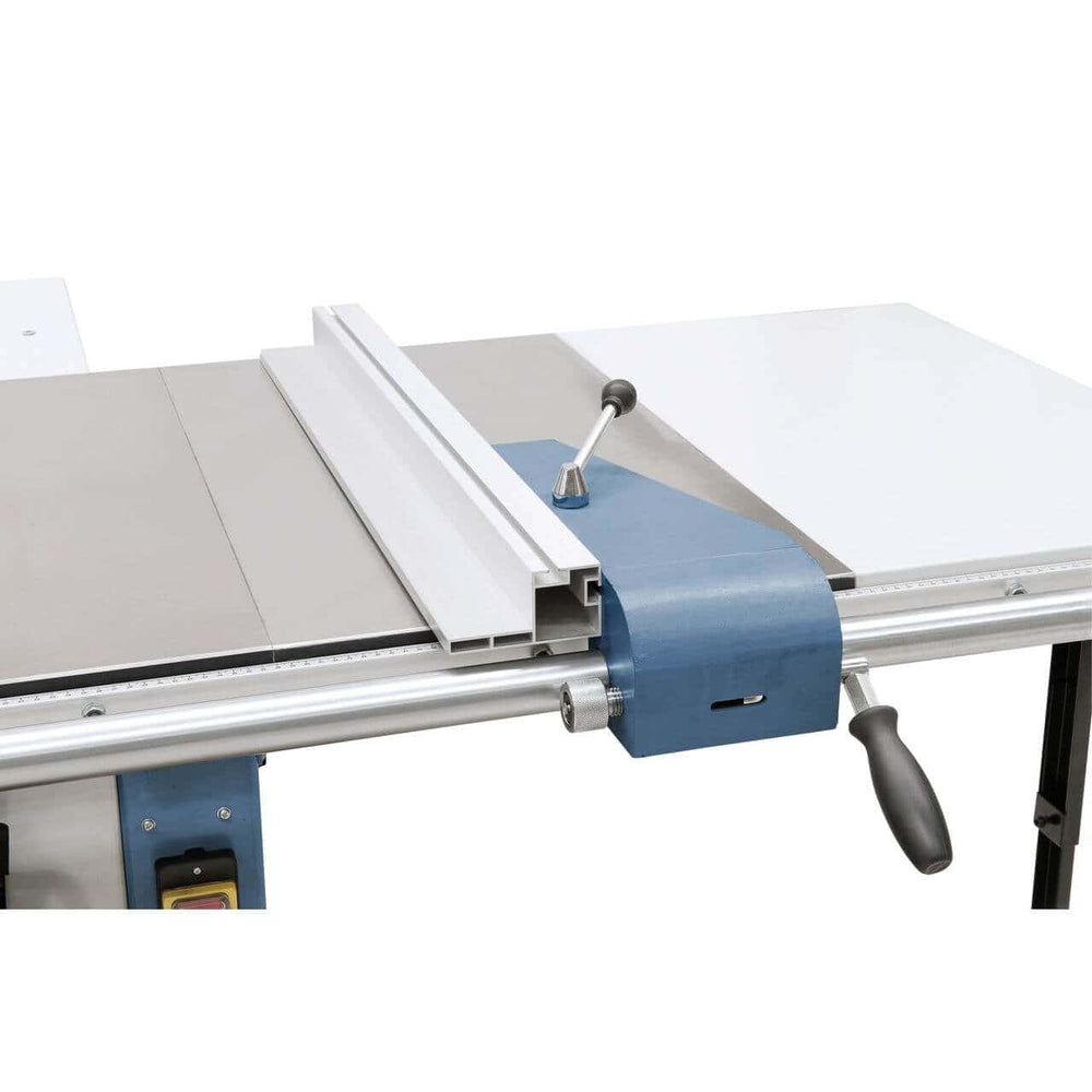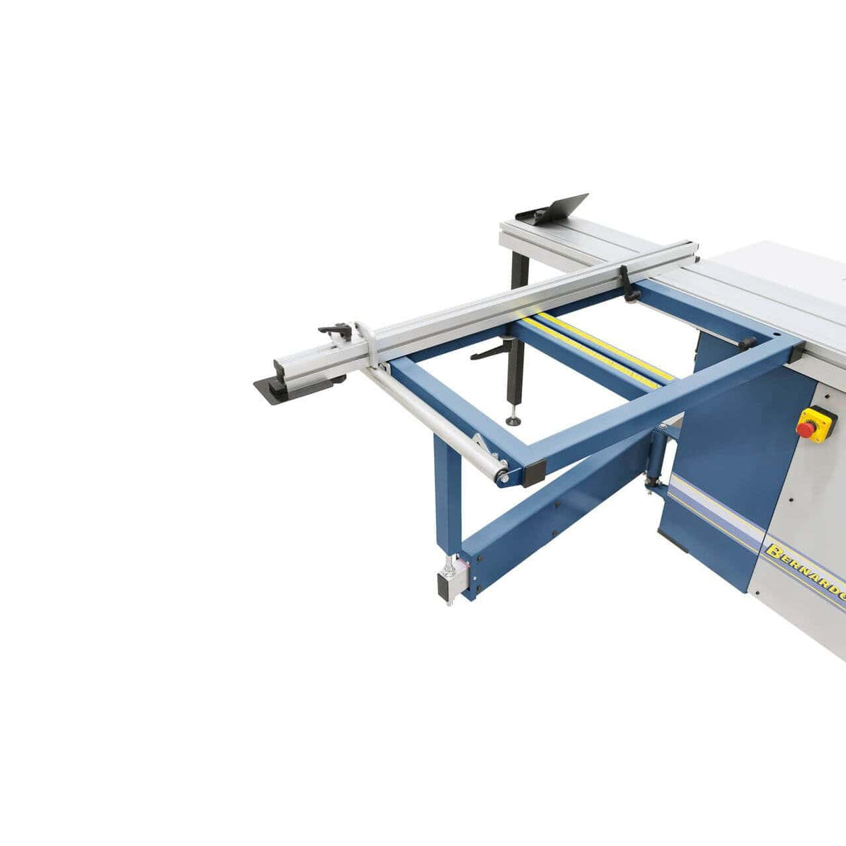 Posiziona il pannello sul carro e fissalo con la guida a squadra. Allinealo con la lama usando la guida telescopica. Spingi il carro in modo costante per ottenere un taglio uniforme, mantenendo le mani lontane dalla lama.