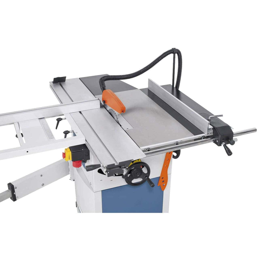 Il cuore della macchina è un motore monofase da 1,5 kW – 230 V, che garantisce potenza e costanza di rendimento con 4.060 giri/min, ottimizzati per tagli rapidi e precisi. L’attacco aspirazione Ø100 mm mantiene l’area di lavoro pulita, migliorando sicurezza ed efficienza.