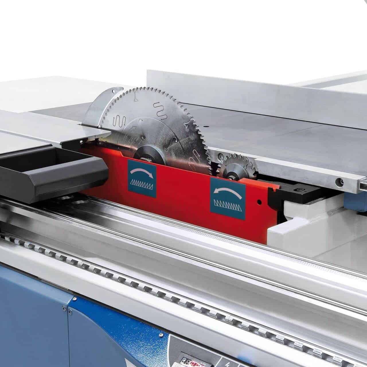 • Carro scorrevole da 3200 mm su doppie rotelle, bloccabile per tagli precisi