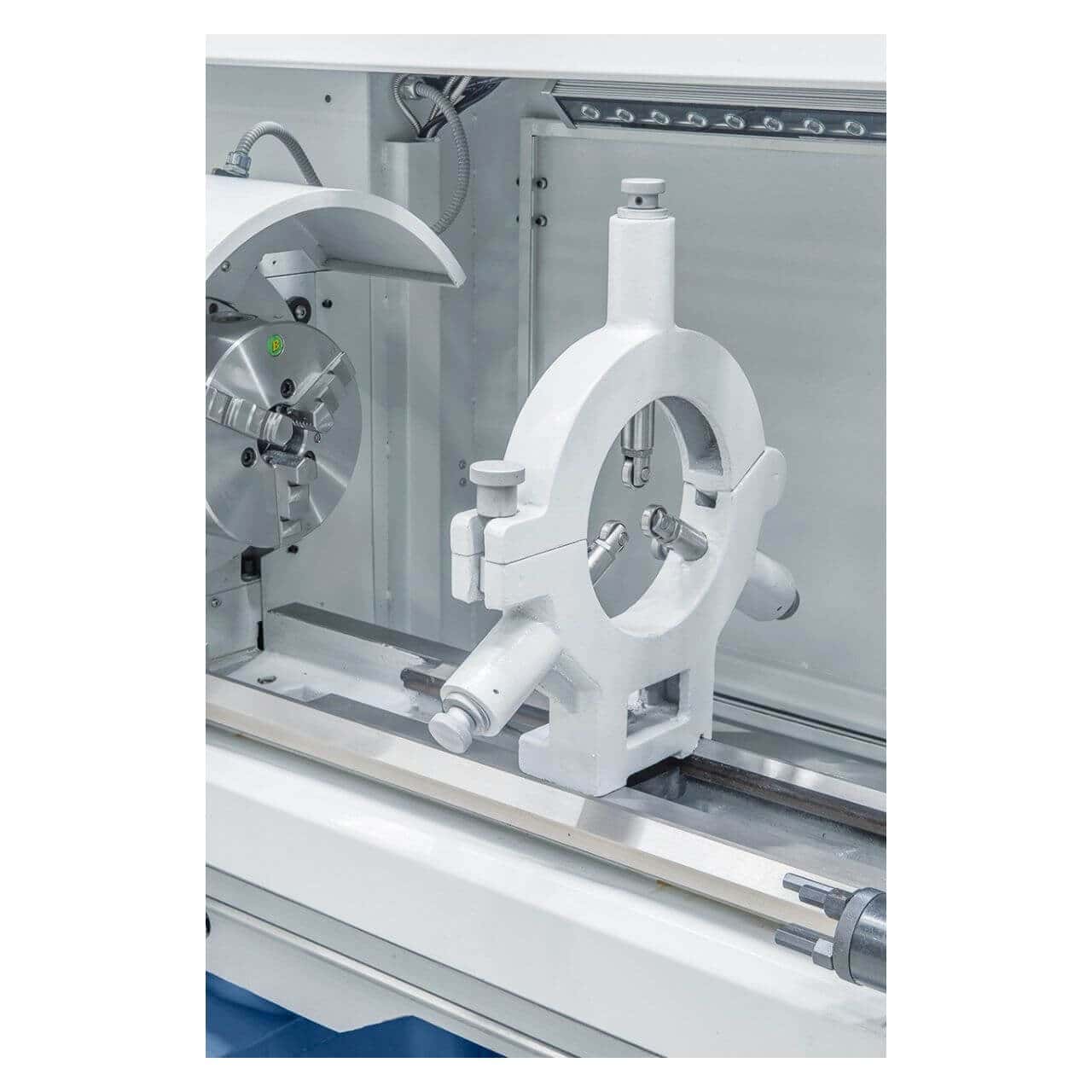 Il tornio Bernardo Compact 410 x 1000 V-constant è progettato per lavorazioni professionali e di alta precisione, ideale per officine e reparti di manutenzione. Con un diametro tornibile sul banco di 420 mm e una distanza tra le punte di 1000 mm, permette la lavorazione di pezzi di medie e grandi dimensioni. Il potente motore da 5,5 kW (7,5 HP), abbinato al variatore elettronico di velocità da 30 a 3000 giri/min, assicura la massima flessibilità di lavorazione. Dotato di visualizzatore digitale a 3 assi ES-12 S con indicazione della velocità, semplifica la gestione delle operazioni e garantisce precisione costante. La ricca dotazione di serie include mandrino autocentrante, piastra frontale da 350 mm, lunette, torretta portautensili a 40 posizioni, dispositivo refrigerante e pedale con freno CE. Una soluzione robusta e completa per esigenze professionali.